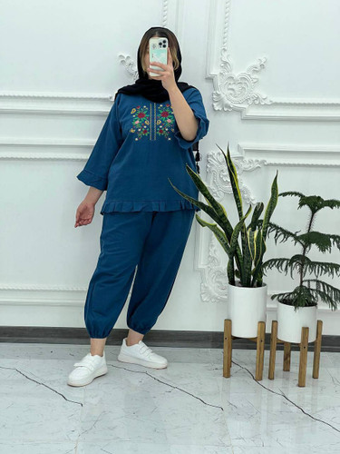 ست شومیز شلوار کوک دوزی آیسان 37164