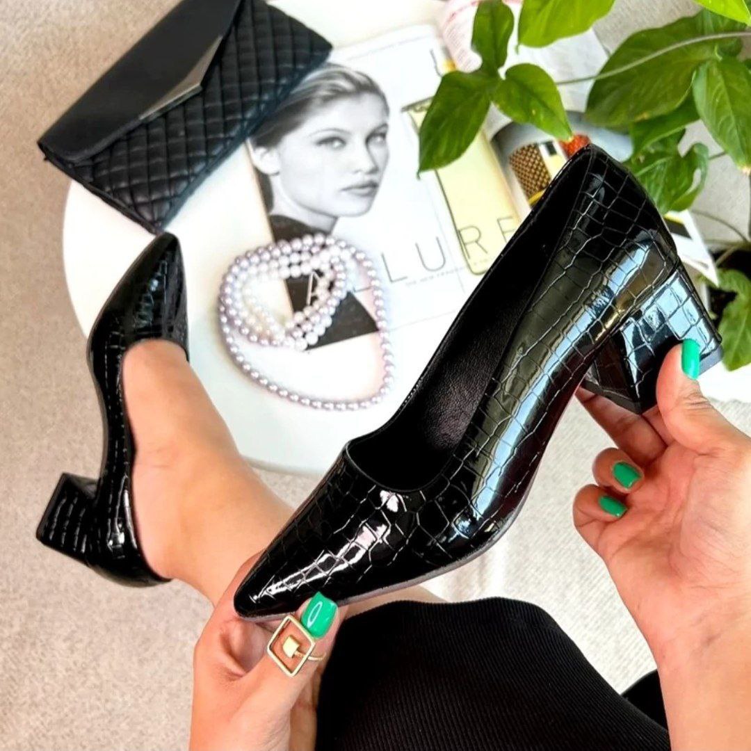 کفش طبی مجلسی مدل ورنی نگینی کد 100298