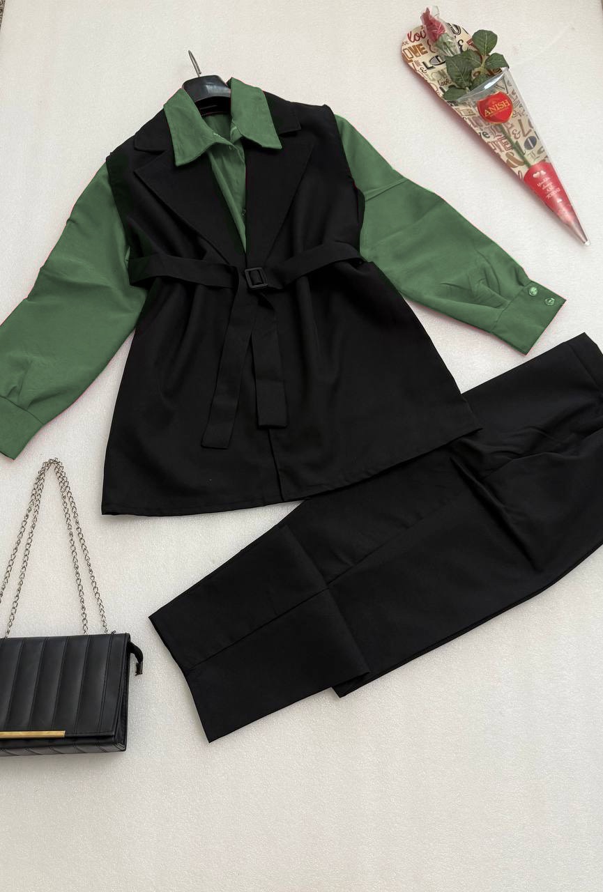 👚نام : ست چهارتیکه سامیتا(شومیز،وست،شلوار وکمربند)