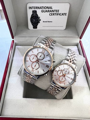 ست ساعت زنانه و مردانه مارک سیتیزن بنداستیل دورنگ رزگلد صفحه نقره ای