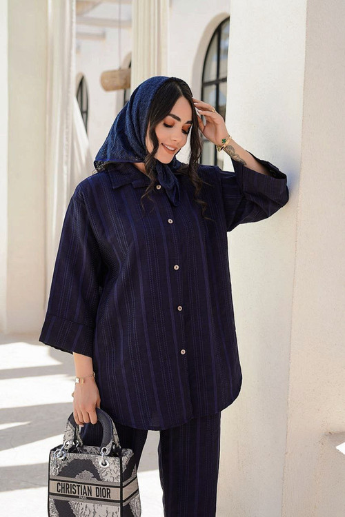 ست شومیز شلوار کوک دوزی آیسان 37164