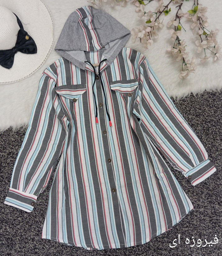 مانتو راه راه کلاه دار 93562