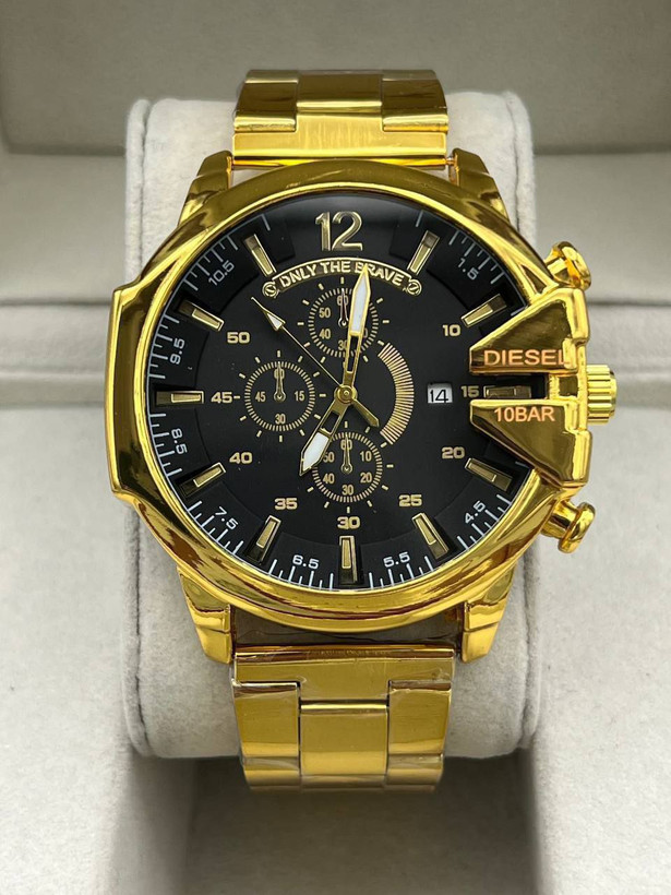 ساعت دیزل شاخ دار مردانه بند استیل طلایی صفحه مشکی