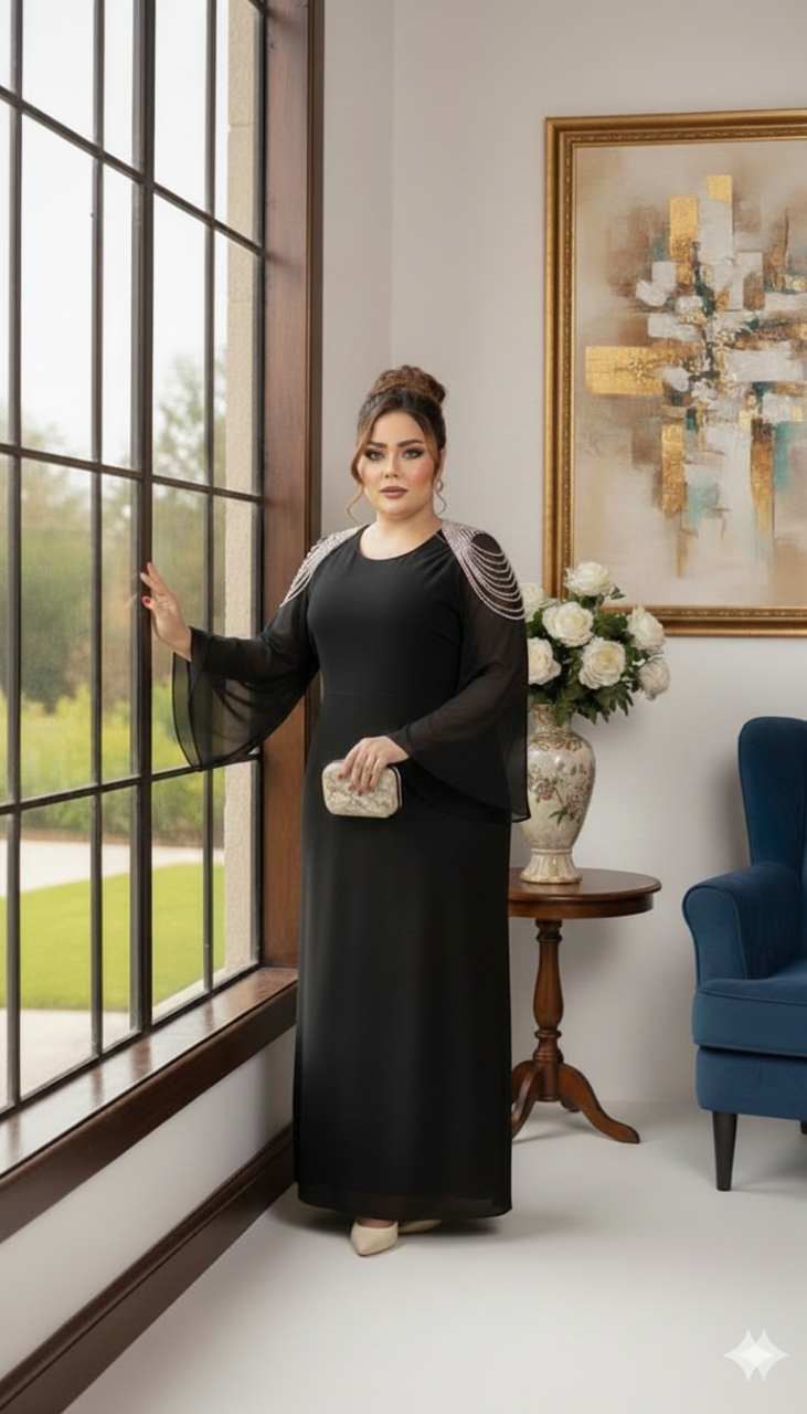 🧵جنس : کرپ درجه یک به همراه سنگدوزی و زنجیر