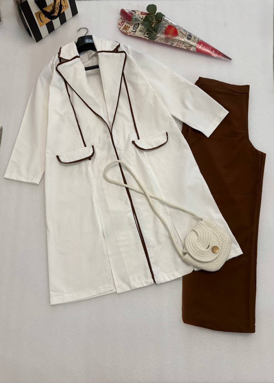 🧵جنس : جنس مانتو کتان اعلاااا و شلوار قهوهای مازراتی درجه یک و مشکی هازان درجه یک