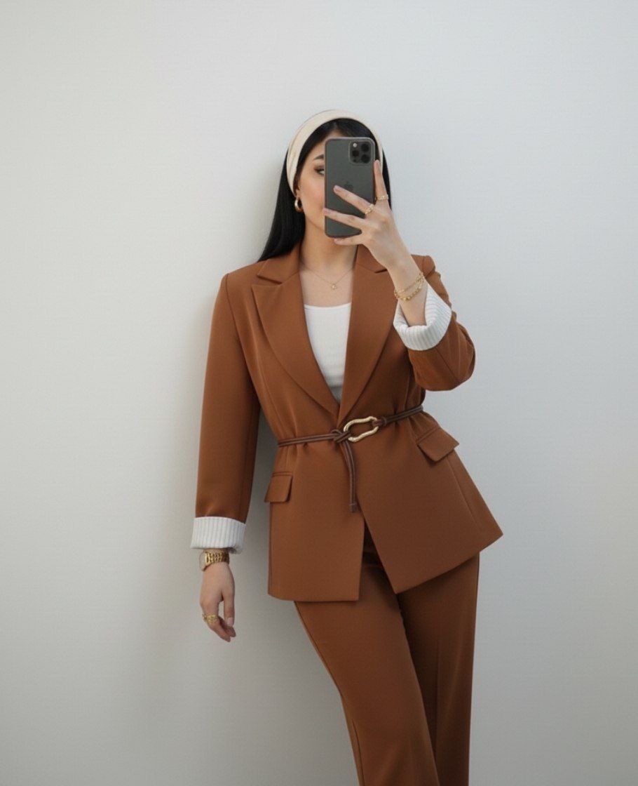 کت و شلوار کمربند گره ای نرگس کد 37389